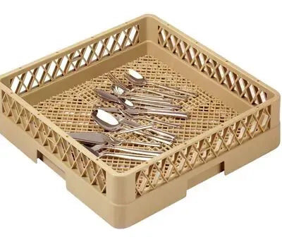 Flatware Basket, Amber Color, Material: PP, Size: L49.8xW49.8xH10.2cm, Widely used in glass,cutlery and dish collected , durable and portable; Easily stacked up and carried .