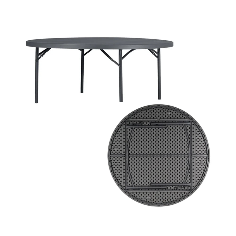 Round folding table Ø150cm for up to 8 people. Ideal table for banquets and celebrations. Table frame designed with no crossbars to ensure greater comfort for users. Its lightweight nature and the quality of the table top mean the table can be easily moved by rolling it without cracking.